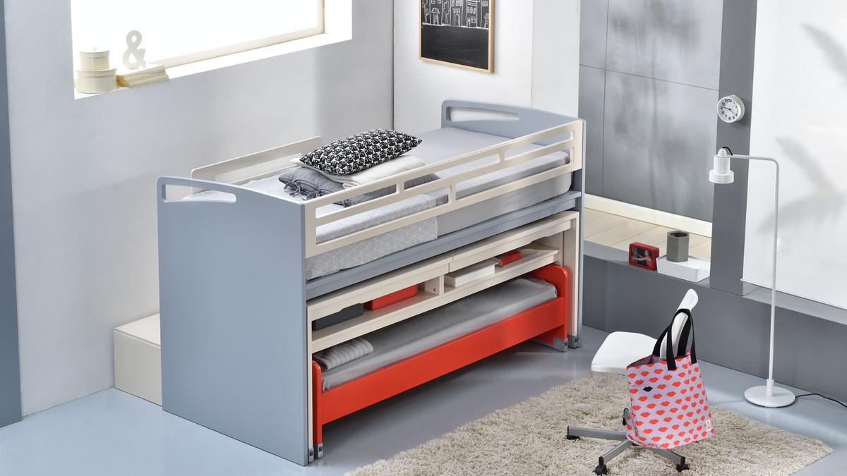 Return To ShopΧαμηλή κουκέτα με δυο γραφεία και δεύτερο τροχήλατο κρεβάτι, με διάδρομο πίσω σαν τρόπο ανάβασης.